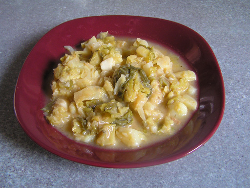 Hozzávalók: 1/2 kg csiperke gomba, 1 nagy fej vöröshagyma, 3 evőkanál olaj, só, 2 gerezd fokhagyma, pirospaprika, borsikafű, bors, kakukkfű. A vöröshagymát megpucoljuk, apróra vágjuk és megdinszteljük az olajon. Meghintjük pirospaprikával beletesszük a meghámozott és felszeletelt gombát sózzuk, borsozzuk. Felengedjük kb. 1 dl vízzel és fedő alatt 15 percig pároljuk. Utána ízlés szerint tesszük bele borsikafüvet, kakukkfüvet és a zúzott fokhagymát. Pár percig még főzzük, hogy összeérjenek az ízek, de ekkor már fedő nélkül. Tipp: tehetünk bele pár kanál tejfölt is a végén vagy akár be is habarhatjuk. Imádom a gombás ételeket; ezt is szeretem, mert kb. 15 perc alatt tálalásra kész. Hozzávalók: 30 dkg penne rigate, 25 dkg csiperke gomba, 1 kis fej vöröshagyma, 2 dl főzőtejszín, 3 evőkanál margarin, só, őrölt szerecsendió, 3 gerezd fokhagyma, 1 evőkanál liszt, petrezselyem zöld, 5 dkg parmezán sajt vagy füstölt Anikó sajt. Egy lábosba feltesszük a tésztának a vizet forrni. Ha forr teszünk bele egy kávéskanál sót majd mehet bele a tészta is és kb. 10 perc alatt "al dentére" főzzük . Míg a tészta fő egy másik lábosba a vajon megpároljuk az apróra vágott hagymát, beletesszük a meghámozott, szeletekre vágott gombát, sózzuk, borsozzuk és fedő alatt puhára pároljuk. Ha a gomba már félig megpuhult, beletesszük a zúzott fokhagymát, az őrölt szerecsendiót és felöntjük a tejszínnel. Tipp: parmezán sajttal az igazi, de ha füstölt Anikó sajtot reszelünk rá akkor se fog minket senki megszólni :) Hozzávalók: 1 közepes fej kelkáposzta (kb. 1 kilós), 25 dkg Rózsa krumpli, 3 gerezd fokhagyma, zsír, köménymag, majoránna, pirospaprika, só, bors, liszt. A kelkáposztának, ha szükséges eltávolítjuk a külső sérült leveleit, majd megmossuk. Negyedbe vágjuk és kivágjuk a torzsáját és vékony (ujjnyi) csíkokra vágjuk. A felvágott káposztát egy nagy lábosba tesszük és annyi vizet engedünk rá, ami pont ellepi és első forrásig főzzük. Majd leöntjük róla ez első főzővizet (így nem fog annyira puffasztani) hozzáadjuk a meghámozott kockára vágott krumplit és felengedjük annyi vízzel, hogy megint ellepje a káposztát, fűszerezzük (só, bors, majoranna) és fedő alatt tovább főzzük, míg meg nem puhul Mikor már majdnem puha beletesszük a köménymagot és a zúzott fokhagymát. Közben a pár kanál zsíron világos rántást készítünk, hozzáadjuk a pirospaprikát majd felengedjük hideg vízzel és besűrítjük vele a főzeléket és pár percig még kis lángon főzzük és jól megkeverjük, hogy a rántás egyenletes legyen benne. Tipp: feltét helyett karikára vágott füstölt virslit szoktam bele tenni. Hozzávalók: 1 kg krumpli, 1 nagy fej vöröshagyma, 2 dl tejföl, 2 evőkanál liszt, 2 gerezd fokhagyma, pirospaprika, babérlevél, só, bors, olaj. A krumplit meghámozzuk, megmossuk és kis kockákra vágjuk. Olajon megdinszteljük a felaprított vöröshagymát, majd beleszórunk pirospaprikát végül beletesszük a krumplit. Felengedjük annyi vízzel, hogy ellepje. Ízlés szerint teszünk bele borsot, majoránnát és megsózzuk. Fedő alatt puhára főzzük. Az utolsó 5-10 percben hozzáadunk néhány babérlevelet és a zúzott fokhagymát. Ha a krumpli megpuhult, a habarással besűrítjük, majd újra felforraljuk. Egy-két percig főzzük, majd tálaljuk. Tipp: ízesíthetjük tárkonnyal is, ha szeretnénk egy kicsit más ízt kapni. Andris egyik nagy kedvence ez az egyszerűen elkészíthető étel, szerinte úgy a legfinomabb, ha jó ropogós. Hozzávalók: 3 nagyobb krumpli, 4 marék kockatészta, 1 nagy fej vöröshagyma, 2 gerezd fokhagyma, 10 dkg zsírszalonna, 2 evőkanál zsír, só, bors, pirospaprika. A krumplit meghámozzuk, apró kockára vágva sós vízben feltesszük főni. Ha megpuhult, leszűrjük. Közben kifőzzük a tésztát előírás szerint. Ha kész, öblítsük le hideg vízzel, csepegtessük le és keverjünk bele egy kis olajat vagy zsírt, hogy ne ragadjon össze. A szalonnát összevágjuk és zsírjára pirítjuk egy serpenyőben, utána beletesszük a kockára vágott hagymát és üvegesre pirítjuk. Beleszórjuk a pirospaprikát majd hozzátesszük az összetört krumplit és a kifőtt tésztát. Alaposan összekeverjük, sózzuk, megborsozzuk, tehetünk bele egy kis majorannát, fokhagymát, rozmaringot is. Ha nagyon száraznak tűnik, adjunk hozzá még egy kis zsírt. Ha ropogósan szeretjük, akkor tovább pirítsuk a serpenyőben. Tipp: ha szeretjük az erőset, készíthetjük csípős pirospaprikával is. Hozzávalók: 1,5 kg Rózsa krumpli, 15 dkg füstölt zsírszalonna, 1 kisebb szál parasztkolbász, 1 nagy fej vöröshagyma, 2 gerezd fokhagyma, 1 paprika, 1 paradicsom, só, bors, pirospaprika, majoránna, rozmaring. A szalonnát kockára vágjuk és egy nagy lábasban zsírjára pirítjuk. Hozzáadjuk a felaprított vöröshagymát. Ha már üveges a hagyma, beletesszük a megmosott, kicsumázott és feldarabolt paprikát és paradicsomot. Kicsit pároljuk majd beleszórjuk és elkeverjük benne a pirospaprikát. Beleöntjük a megpucolt és feldarabolt krumplit és annyi vízzel öntjük fel, hogy éppen ellepje a krumplit. Ízlés szerint fűszerezzük (só, bors, rozmaring és majoránna ) és fedő alatt 20 percig főzzük. 20 perc után beletesszük a karikára vágott kolbászt és a zúzott fokhagymát is. Még további 10 percig főzzük így, akkor jó, ha már a szaftja besűrűsödött. Tipp: kolbász helyett tehetünk bele füstölt virslit is. Erről a főzelékről nekem mindig gyermekkorom jut eszembe; a menzai paradicsomos káposzta, ami szerintem nagyon finom volt. A káposztát megmossuk, ha szükséges külső leveleit eltávolítjuk. Negyedbe vágjuk, kivágjuk a torzsáját, majd ujjnyi vastagságú szeletekre vágjuk. Annyi vízben, hog