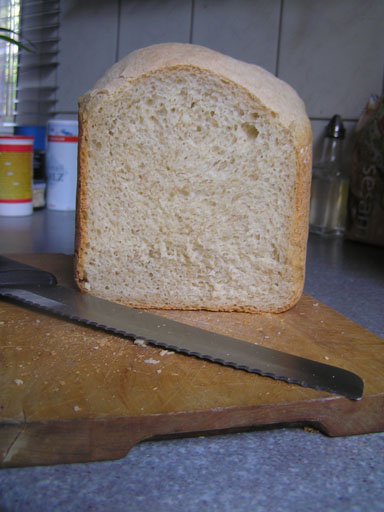 Kb. 5 éve sütünk házilag kenyeret, akkor kaptam Andristól a kenyérsütőt, amit azóta is nyúzok. Szegény gép már elég megfáradt darab, hiszen több száz kenyeret sütöttem már benne, de még bírja a strapát. Több okból is sütünk; egyrészt szeretem tudni, hogy amit megeszem miből készül másrészt olcsóbb, mintha megvenném a boltban. Meg van abban valami régi idők hangulata, ahogy sül a kenyér és érzed az illatát. Nem vagyok nagy kenyér fogyasztó de a langyos kenyér megkenve vajjal, na az valami isteni.