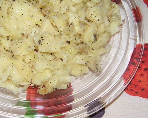 Vagy magyarosan káposztás tészta, ki hogy hívja és ki hogyan eszi; van aki sok borssal és van aki cukorral. Töredelmesen bevallom én cukrosan szeretem, Andris meg férfiasan sok borssal. Egyszerű, de nagyszerű étel, ha túl vagyunk balesetmentesen a reszelésen már nyert ügyünk van.