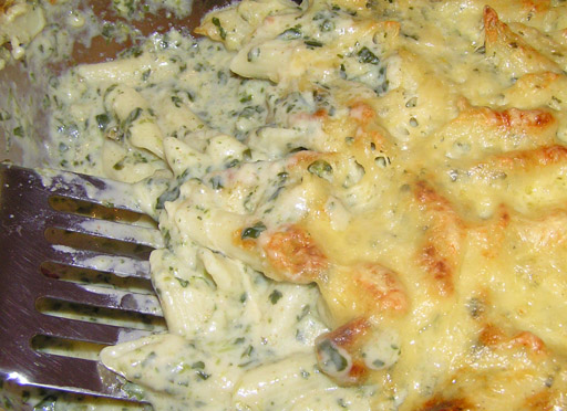 Ha tésztához készítjük, akkor beleteszünk még 2 tömlős sajtot (én a sparos 100 grammos tömlős sajtot szoktam venni). A penne tésztát sós vízben kifőzzük. Majd a lecsöpögtetett tésztát összekeverjük a kész spenóttal, tetejére reszelt sajtot szórunk. Sütőben kb. 10-15 percig 180 fokon sütjük, igazából csak annyi kell hogy az ízek összeérjenek és a sajt ropogósra süljön a tetején. Frissen a legjobb, mert másnapra a tészta megszívja magát.